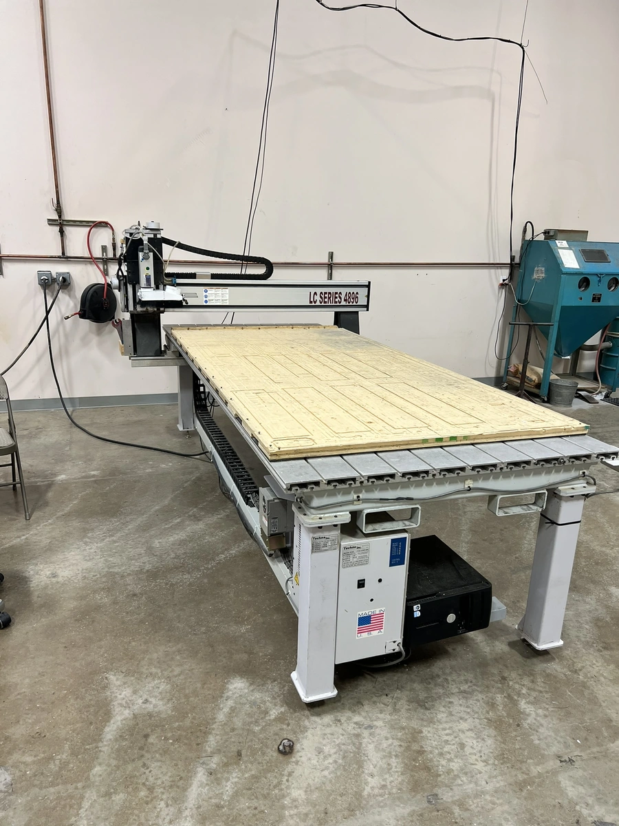 Techno CNC 4896 router. This has been a great machine that we no longer need. Cuts wood, plastic and aluminum just fine. Very powerful machine. The machine is 3-phase. It is hooked up so I can cut some samples if needed.